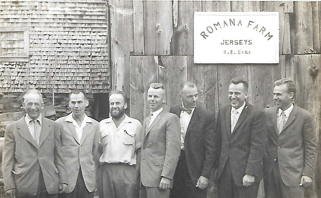 Richard E. Dana and family at the original Romana Farm in Pomfret, Vermont - 1961.